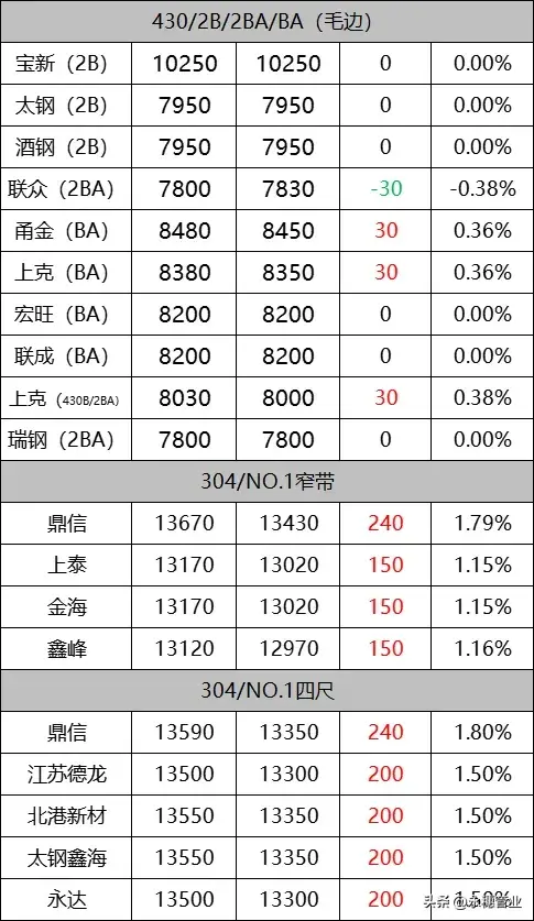 不銹鋼水管價(jià)格本周震蕩運(yùn)行,周內(nèi)成交氛圍一般,下游整體消化能力也一般,社庫繼續(xù)下降,貿(mào)易商庫存偏緊,原料端價(jià)格也收到不銹鋼提振,鋼廠生產(chǎn)有一定利潤空間,排產(chǎn)仍處高位。后續(xù)主要關(guān)注社庫去化速度以及鋼廠的計(jì)劃排產(chǎn)變化情況,關(guān)注鋼廠產(chǎn)量投放節(jié)奏。預(yù)期后市不銹鋼偏強(qiáng)運(yùn)行。